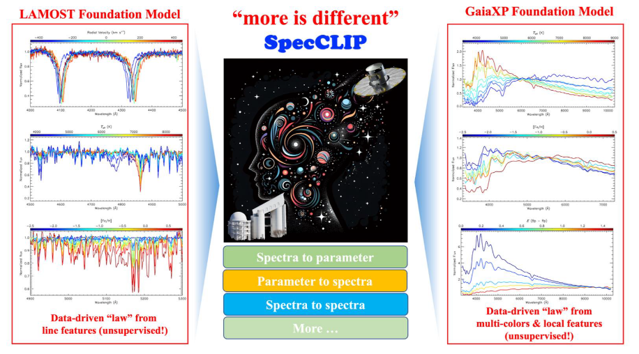 在人工智能大模型迅速发展的今天,天文学也正在迎来一场新的技术变革。近日,由中国科研团队主导完成的研究成果 SpecCLIP人工智能模型正式发表,该工作将类似“大语言模型”的思想引入恒星光谱分析,为跨巡天数据融合和精密恒星物理参数研究提供了全新的思路。该成果也是我国团队在“天文基础模型”研究方向上的一次重要突破。