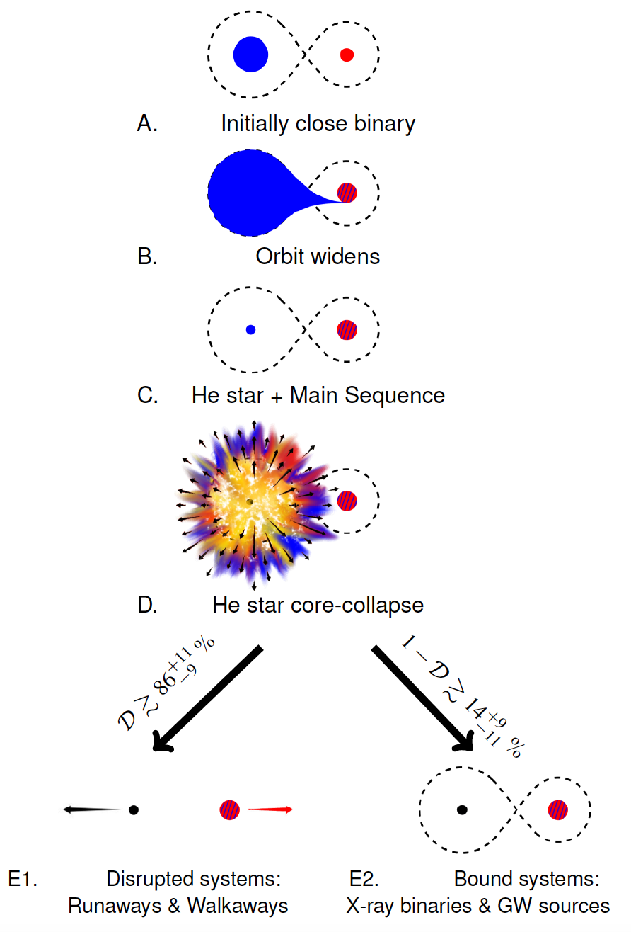 图一:速逃星的双星超新星形成途径Renzo et.al (2019)