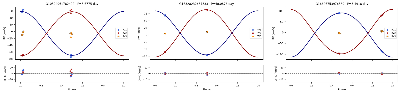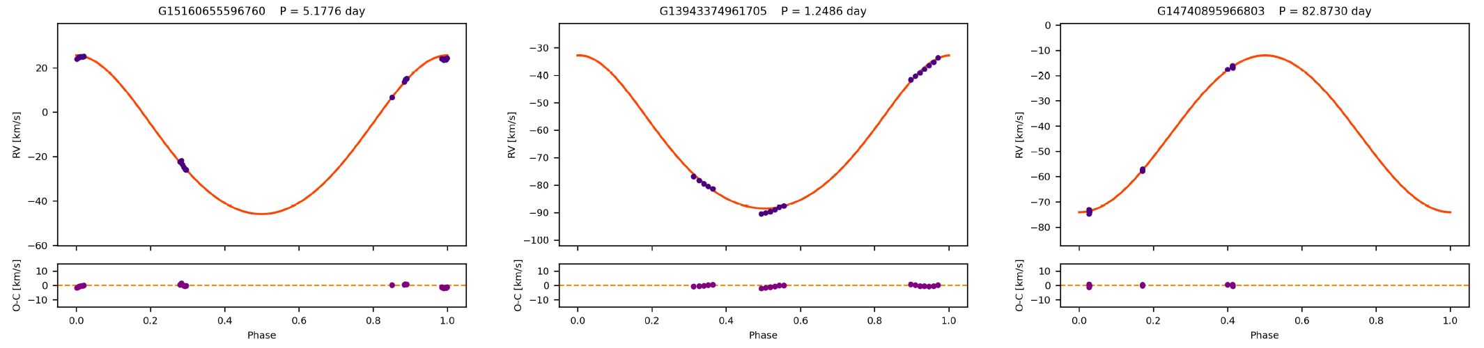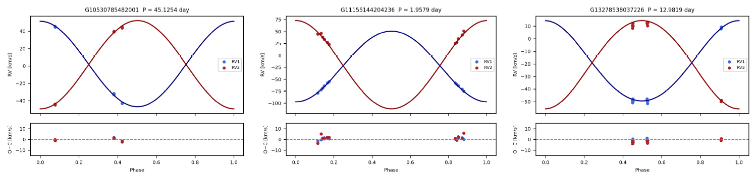 此外,他们还对部分观测次数较多的系统进行了解轨分析,成功获得了300多组双星系统的轨道参数,并识别出40多个层级三星系统的轨道信息。