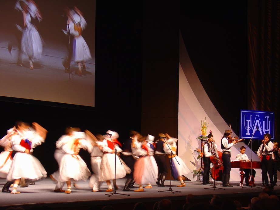 布拉格著名的儿童艺术团为天文学家表演节目